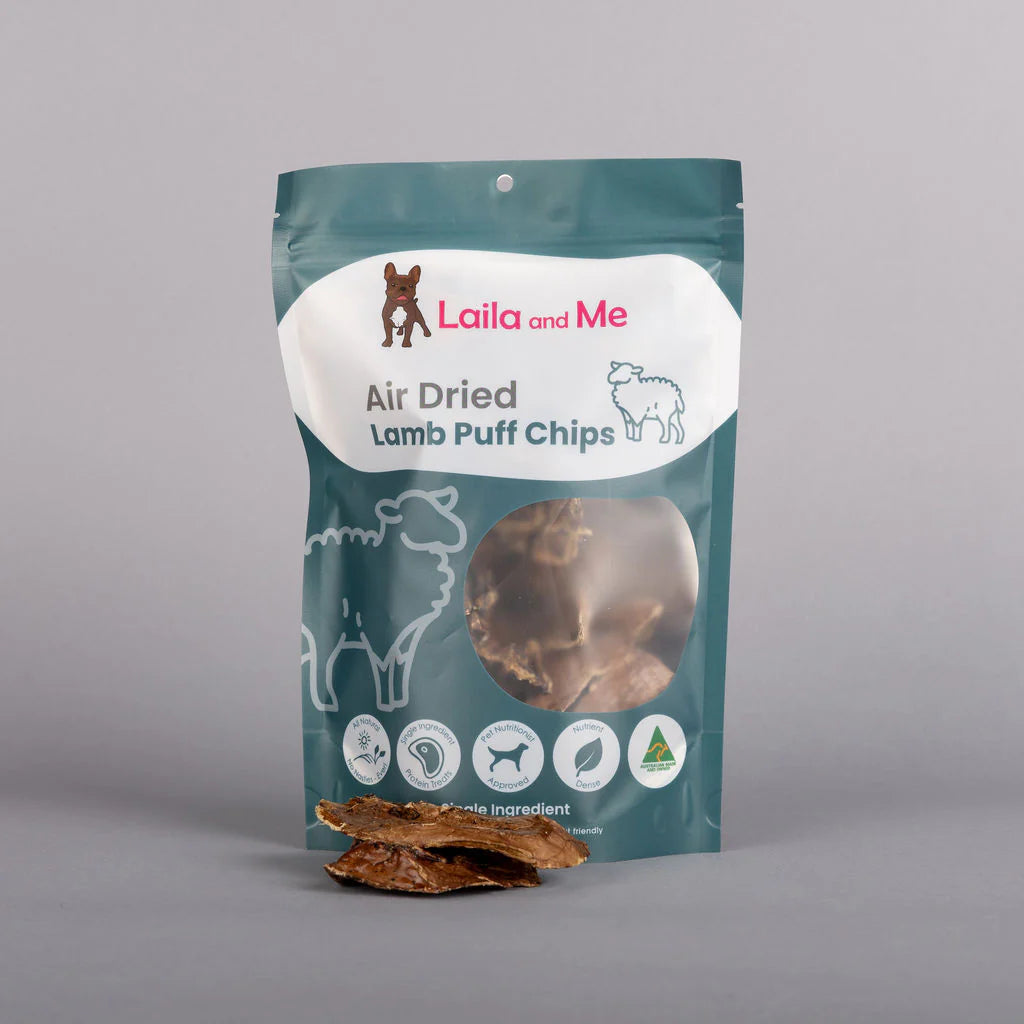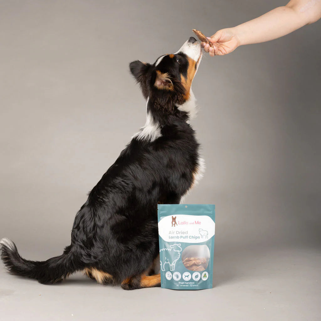 Light, crunchy Lamb Puff Chips made from 100% Australian lamb lung — the perfect high-value training reward.