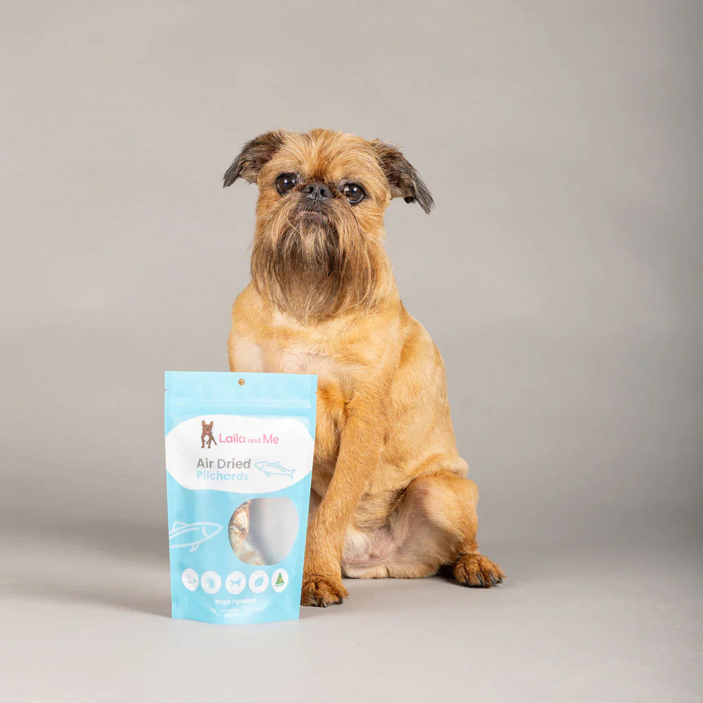 Whole dehydrated Australian pilchards — a natural, omega-rich seafood treat packed with protein and essential nutrients for dogs and cats.