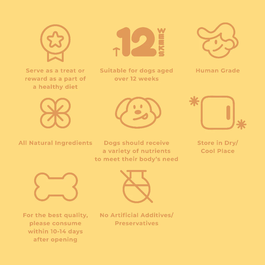 Feed as a treat or reward. Suitable for dogs aged 3 months and above. Always supervise during feeding and ensure fresh water is available.